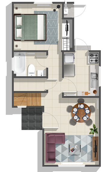 Estas imágenes tienen fines ilustrativos y las dimensiones son aproximadas. No constituyen necesariamente una representación exacta de la realidad. Los colores de los materiales pueden variar según disponibilidad. No incluye césped. Lo anterior se informa en virtud de lo señalado en la Ley N°19.472.
